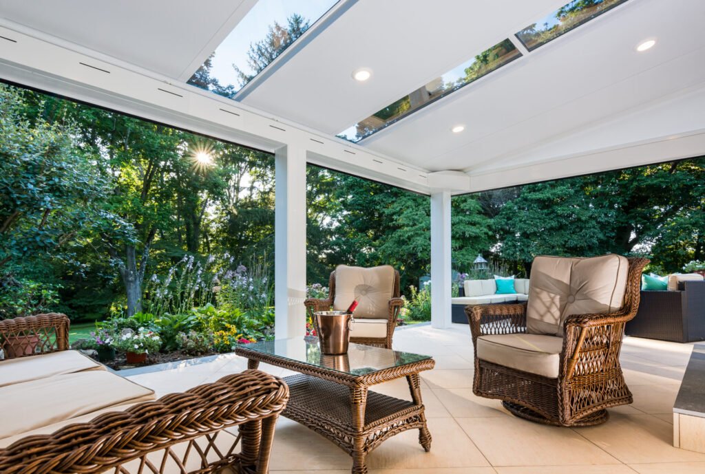 We offer custom sunroom designs, four-season sunrooms, and glass room enclosures that can be fully insulated and heated for year-round use.