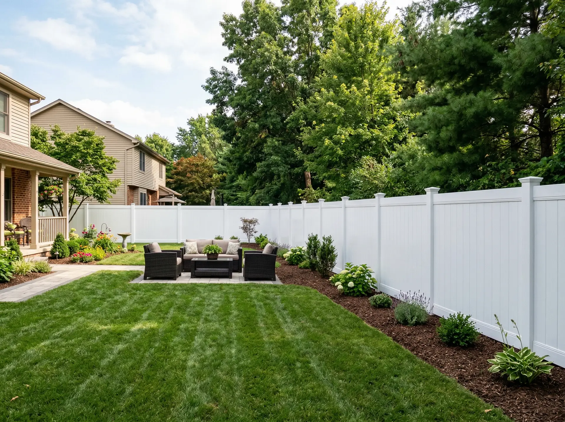 - Low Maintenance: Choose from durable outdoor fencing materials like vinyl, composite, or pressure-treated wood for lasting performance.