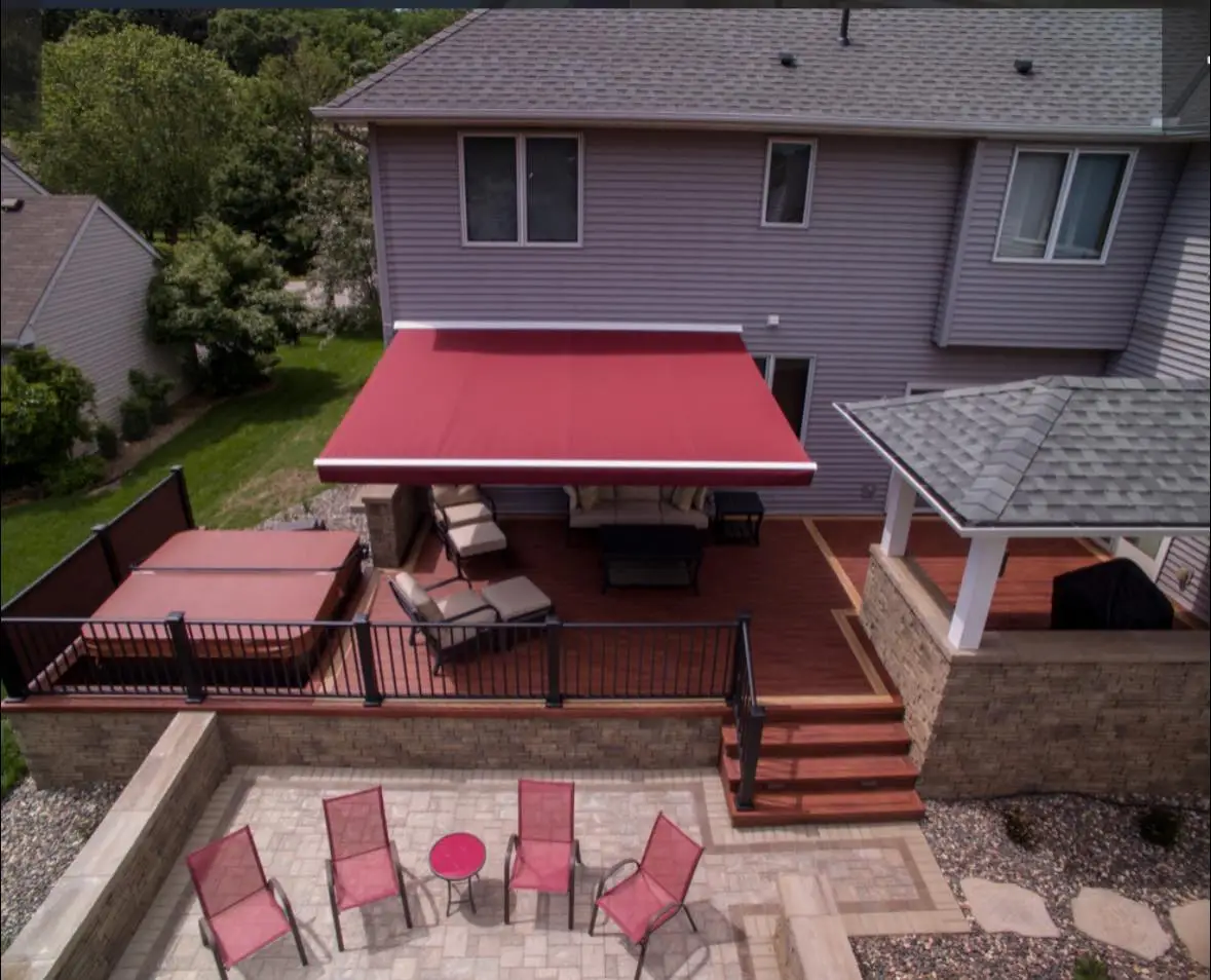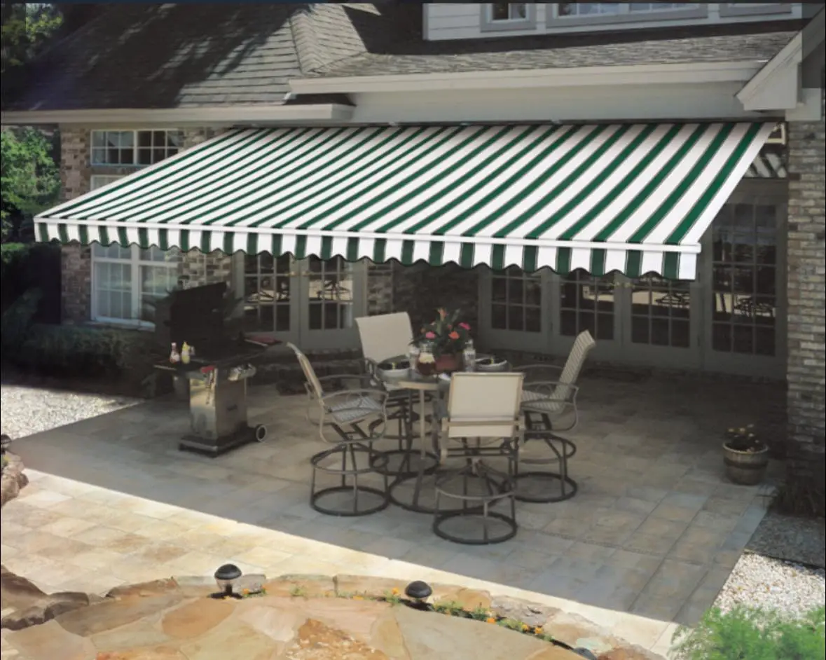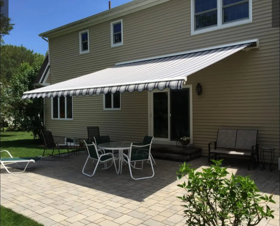 Motorized patio awnings operate using a remote or wall switch for easy, one-touch control, while manual retractable awnings use a hand crank. Both options are smooth, quiet, and reliable—the choice depends on your convenience preference and budget.